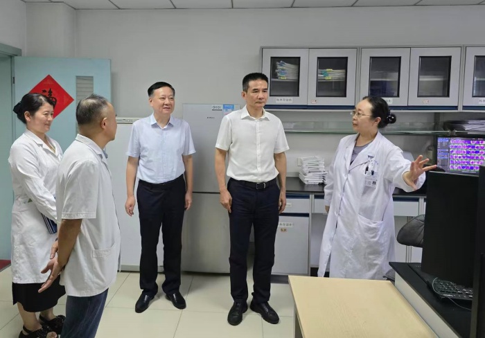 王琦先后深入流式细胞室、细胞形态学室、细胞遗传学室、分子实验室以及CAR-T临床转化应用实验室,实地察看了科研平台建设和运行情况,详细了解血液内科在临床诊疗、科研创新、成果转化等方面的最新进展。听取汇报后,他对医院血液病学科在科研能力建设、平台整合和创新转化中取得的成绩表示充分肯定。