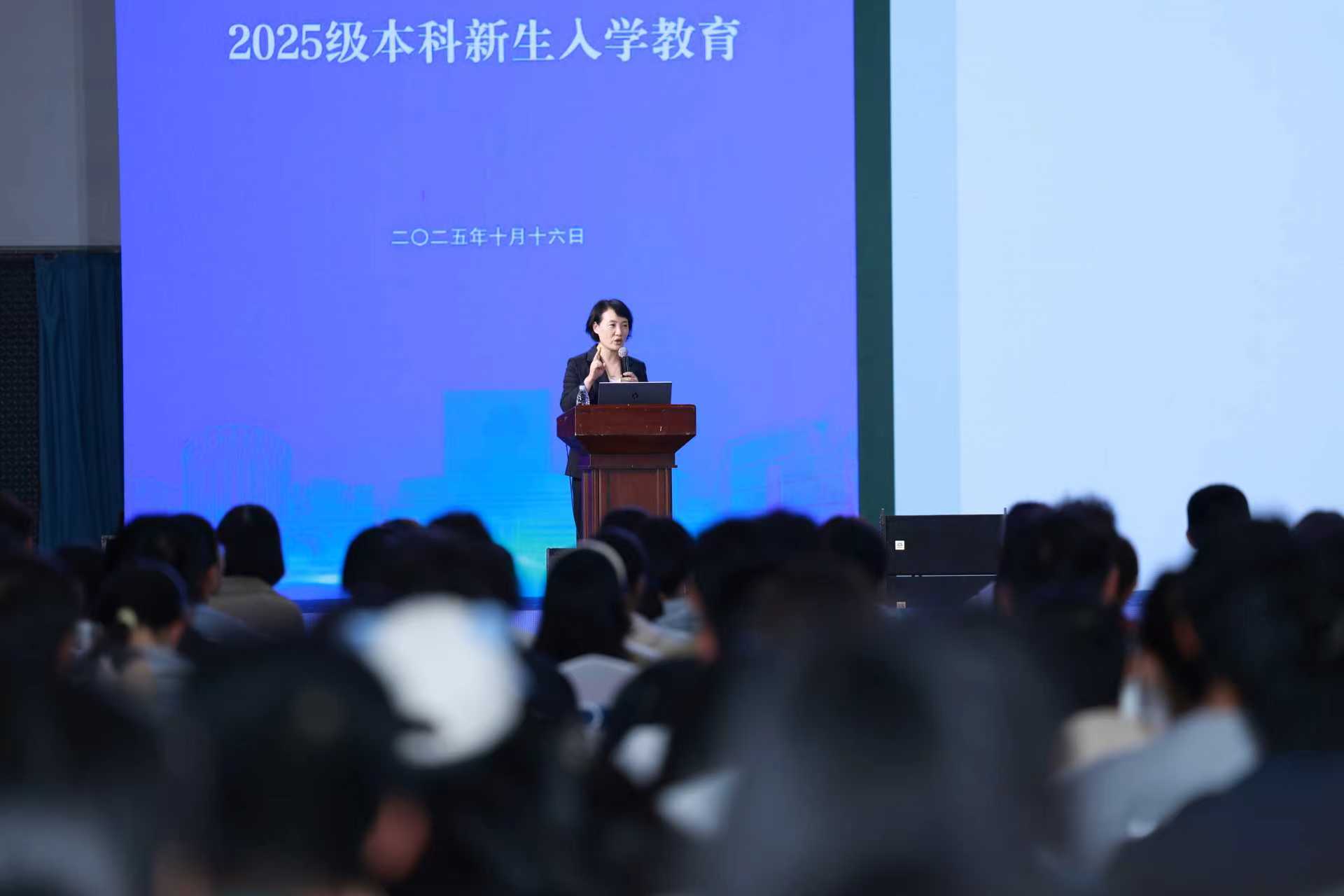 10月16日,学校在新医科中心综合训练馆举行2025级本科新生入学教育系列讲座,线下500余名新生代表与线上同步参会的全体新生,同上一堂“规矩塑形·安全启航·赋能未来”集中入学教育课。